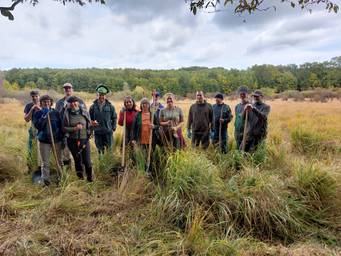 Zajlik a láprét becserjésedése, így ezeket a cserjéket vágtuk és hordtuk le a területről. Illetve, nagy mennyiségű avar, azaz túlzott mennyiségű szerves anyag halmozódik fel a területen, ami kedvez az inváziós fajok megjelenésének és az eredeti -tápanyag szegény környezethez szokott- lápi növényzet számára egyre inkább alkalmatlanná válik az élőhely. Csapatunk ettől az avartól is próbálta megszabadítani a területet, a munkánk eredménye leginkább a hatalmas kazlakkal közlekedő önkéntesek oda-vissza ingázásán, majd az erdő szélére kihordott avarosodott növényzet mennyiségén látszott.